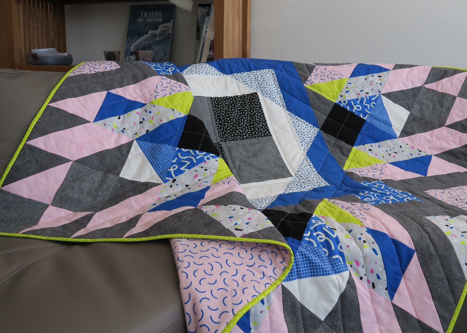 Le design est plus classique que ce que je fais habituellement mais je pense que le choix des tissus ajoute une touche moderne au quilt.