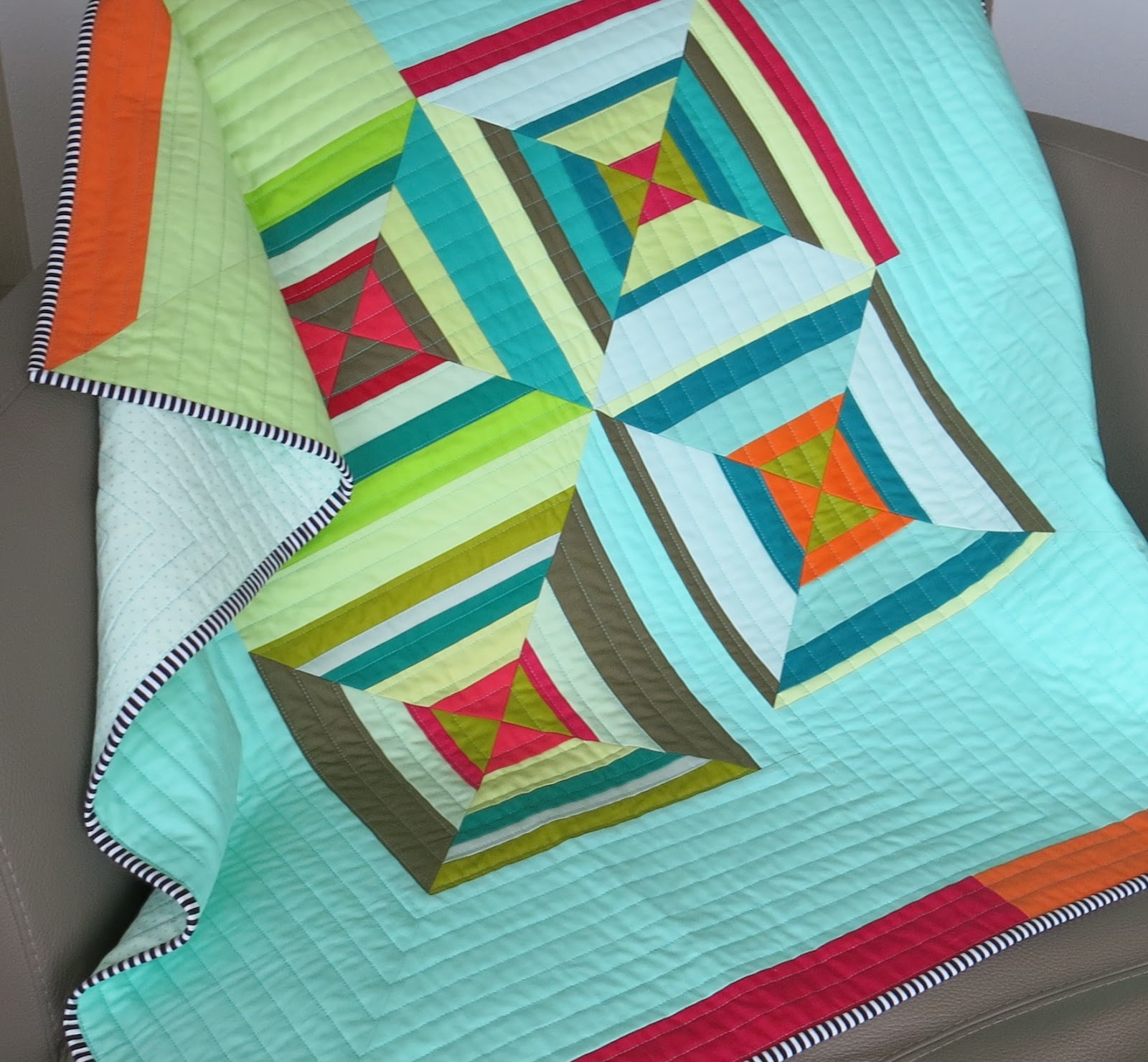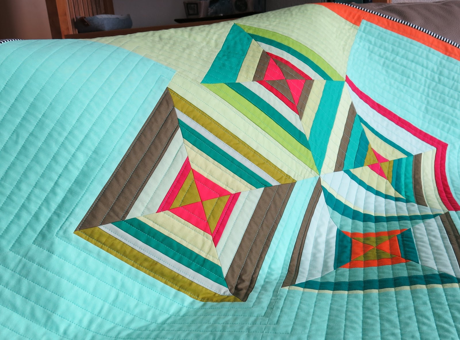 To emphasize the wonky layout I quilted concentric squares starting in the most off-centered block.