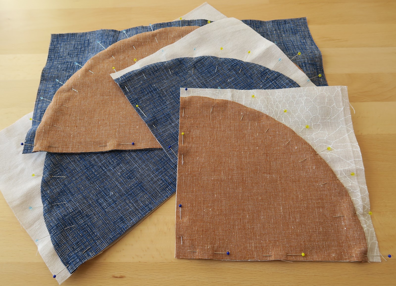 Luna Lovequilts - Hand applique curves in Essex Linen and Polk collection by Carolyn Friedlander