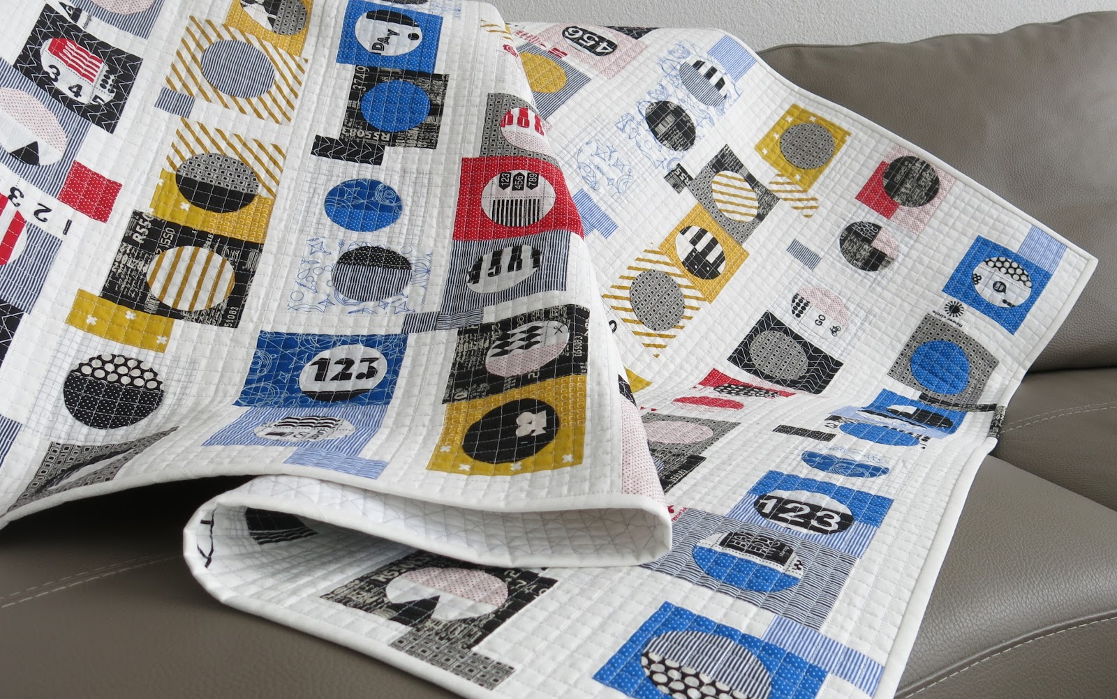 I love the graphic prints I chose for this quilt. It is a mix from different collections and manufacturers though the First of Infinity fabrics from Lecien stand out more than any other print.