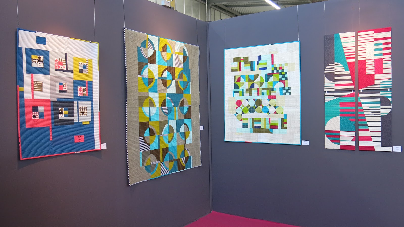 Mon quilt Retro était la pièce la plus grande et j’ai décidé de l’accrocher à l’endroit le plus visible. L’idée s’est trouvé être vraiment bonne car cela a aidé à attirer l’attention sur mon exposition qui était un peu dans un coin.