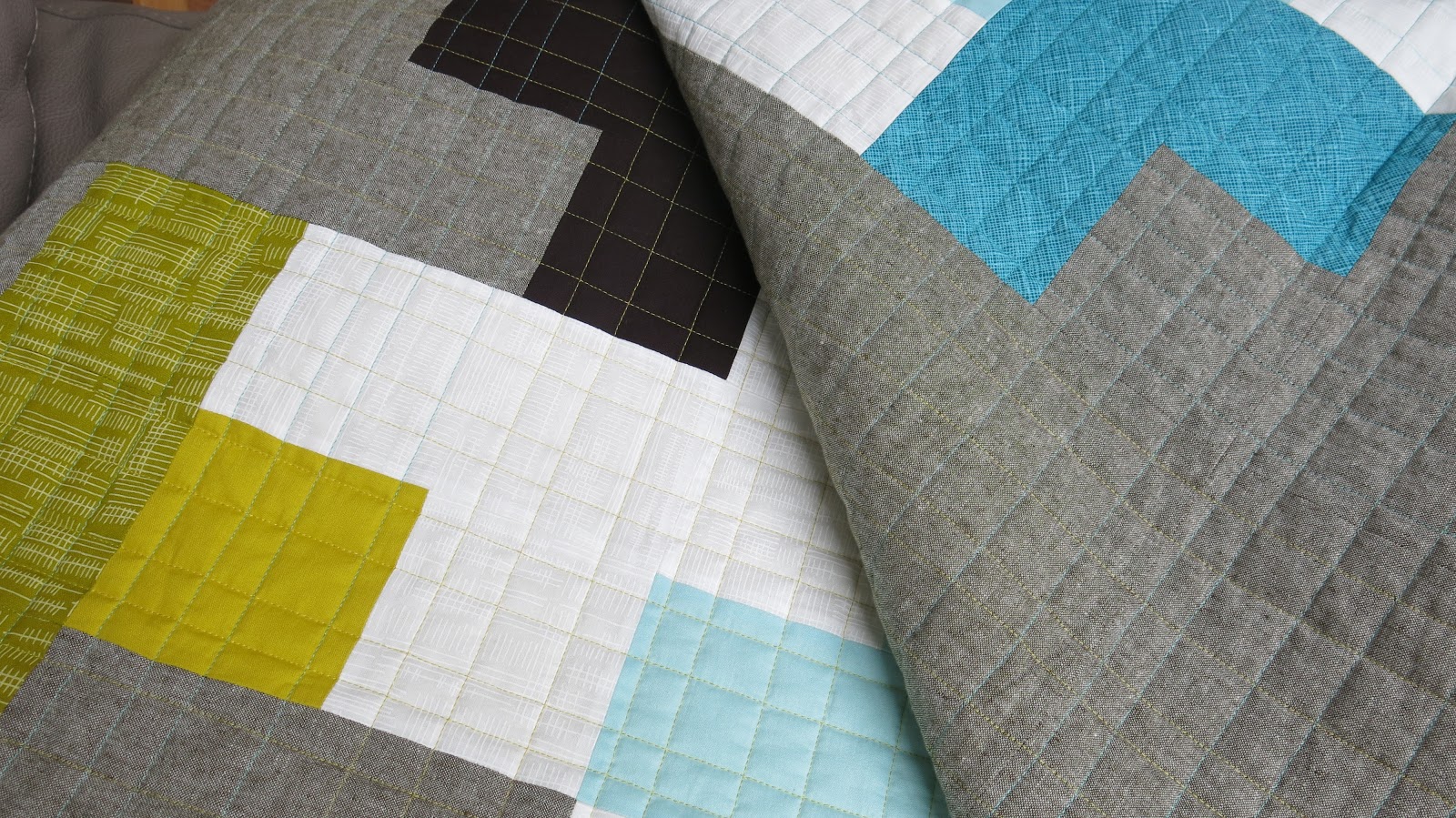 Je n’ai rien changé au modèle et j’ai même choisi des couleurs et un dessin de quilting très similaires à l’original. J’ai simplement apprécié de le piécer et le quilter !