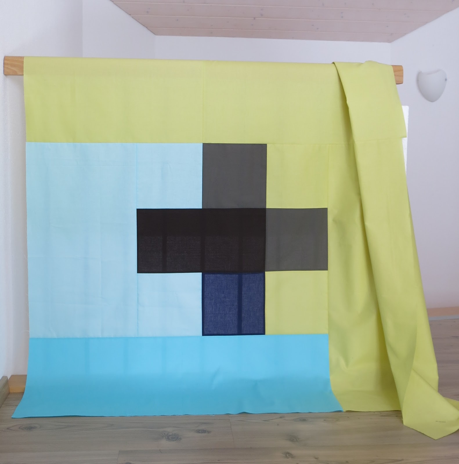 Quand j’ai vu l’année dernière le mini quilt de Paige, Positively Transparent, sur son blog Quilted Blooms, je l’ai adoré au premier coup d’oeil. Donc je n’ai pas hésité très longtemps quand elle a mis à disposition un modèle version plus large pour les membres de la Modern Quilt Guild …